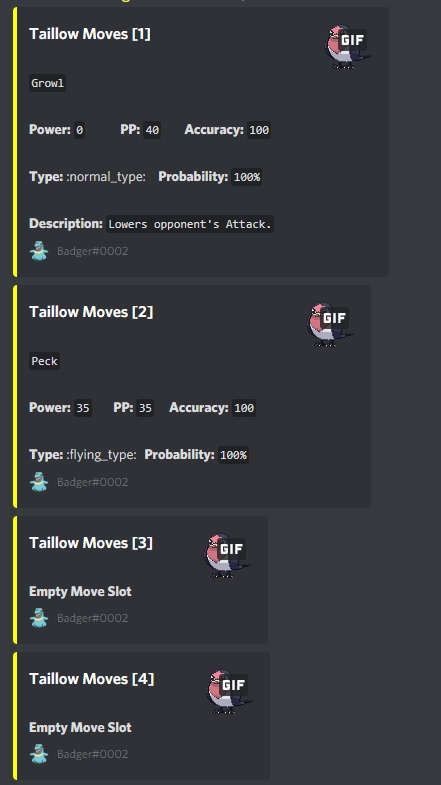 p!moves <pokémon ID> - Show the moves your pokémon has